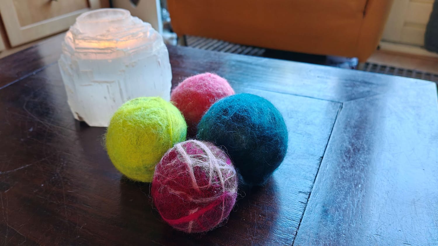 Onrust in je lijf en je weet niet goed wat je ermee moet. Deze zachte schapenwollen viltbal helpt je om spanning kwijt te raken via je handen.